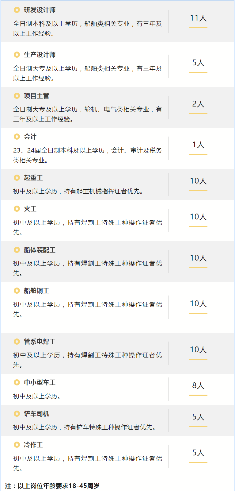 中船澄西船舶修造有限公司招聘12个岗位87人