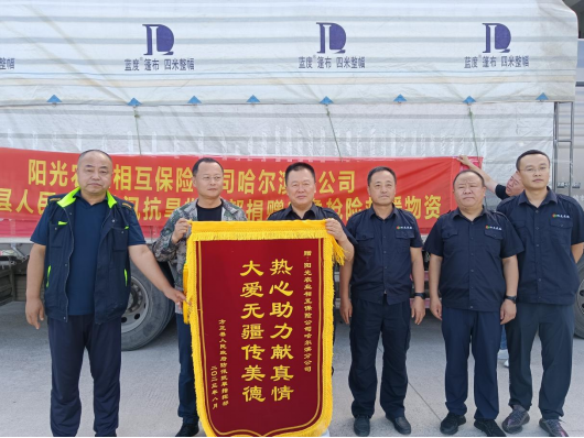 张昕明对企业善举表示感谢并为企业负责人颁发锦旗。他表示,阳光农业相互保险公司积极履行社会责任,用实际行动弘扬了大爱精神,这次捐赠活动,为抗洪一线工作人员,提供了更加坚实的物质保障,为方正县打赢战洪峰、防洪灾这场硬仗贡献了力量。