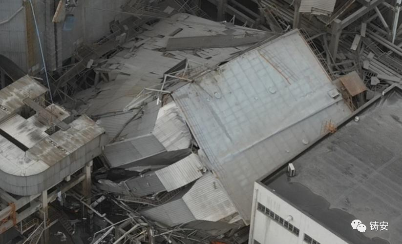 经调查认定,外高桥电厂2号机组除尘器未经可靠性鉴定进行改造设计,改变了除尘器箱体内部结构和荷载分布,盲目提高设计灰荷载,导致原有承重结构受力发生变化。除尘器钢支架在长期运行过程中柱头发生塑性变形和累积损伤,承载力降低。在不均衡积灰荷载的影响下,部分柱头先行压溃,使得除尘器(A侧)壳体重心偏移、失去平衡,引发连续性垮塌。