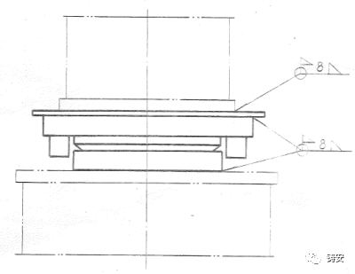 除尘器(A侧)C2柱顶为固定支座(柱头与上方短柱固定连接),C列和②行上的其余支座为导向支座(柱头上方短柱可单向移动),剩余的为自由支座(柱头上方短柱可自由移动)。三种支架柱顶支座见图3。