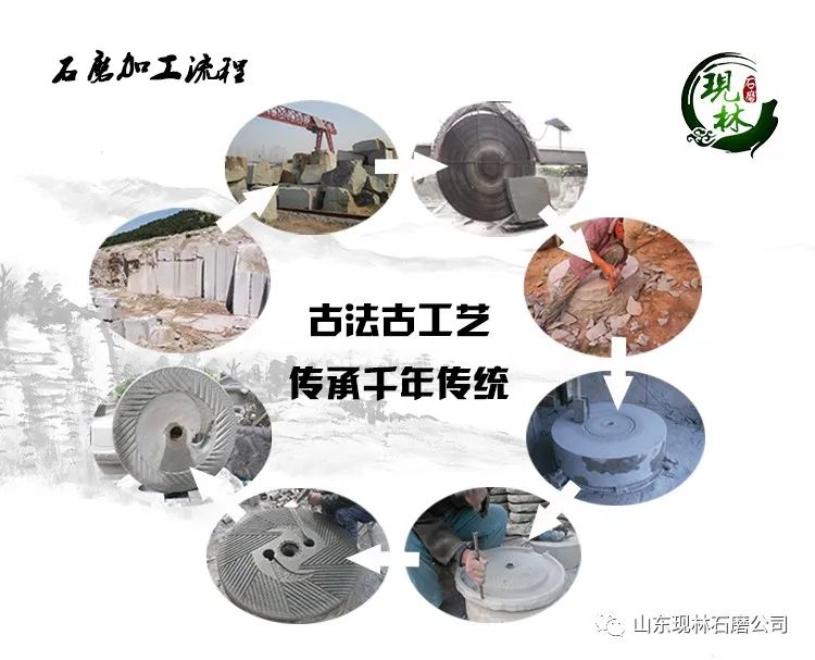 现林石磨采用的石材是纯天然砂岩。砂岩是一种无光污染、无辐射的优质天然石材,对人体无放射性伤害,绿色砂岩颗粒均匀,质地细腻,硬度适中,天然性效果理想。绿色砂岩是所有砂岩品种中耐磨程度最好的,这也决定了其耐用性好。现林石磨的制作工艺,是传承古法,古工艺,纯手工打凿的,其生产的石磨机械获得了海内外的一致好评。