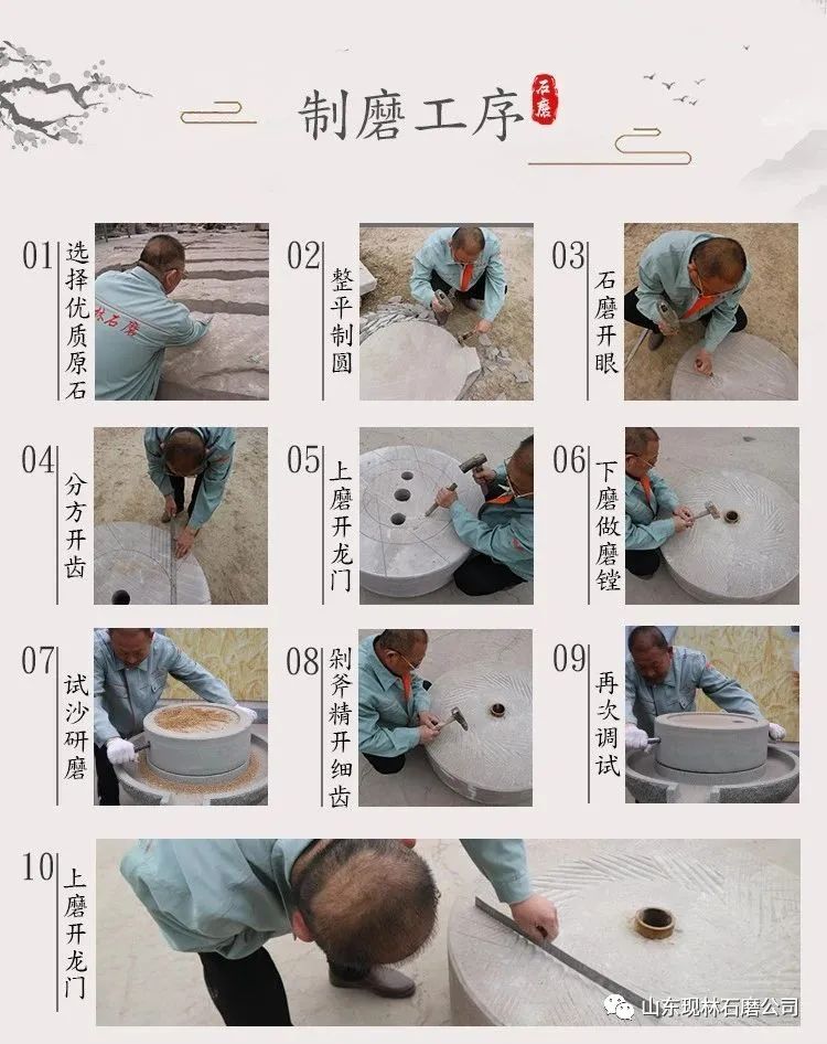 由于石材切割、加工技术的进步,今天的石磨制作工人,已经能够很快制作完一盘完整的石磨。