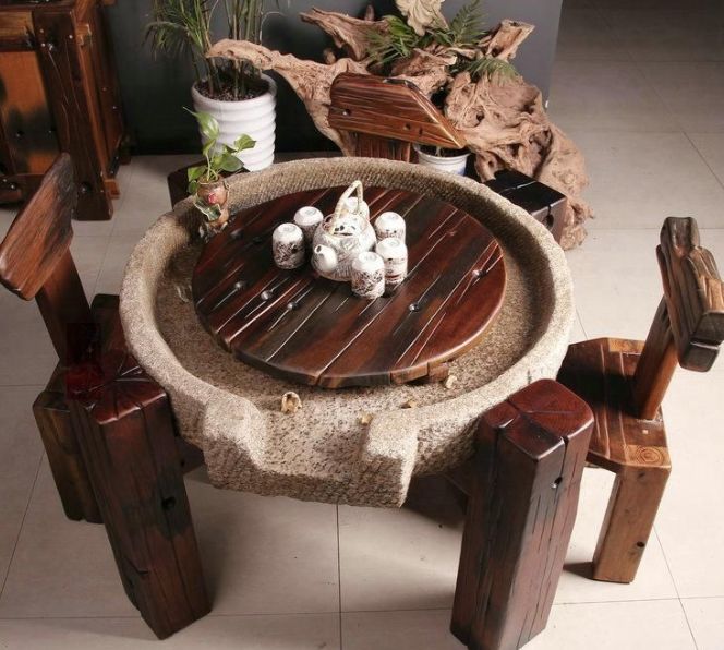 即使是当年农村淘汰下来的石磨,更有精明的工匠将其打造成石磨茶桌,茶盘等,被请进农家乐,旅游区等,特色的石磨盘和石磨的磨齿纹盘仍焕发着当年的光彩。