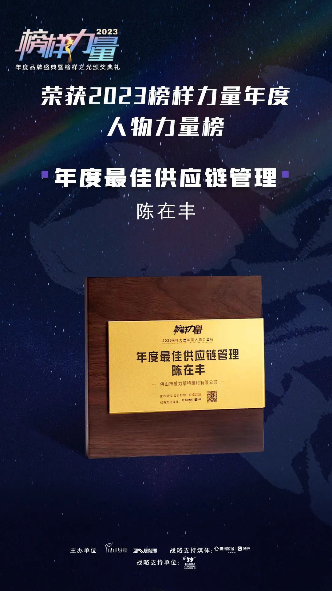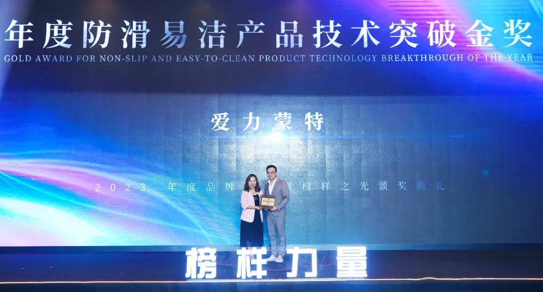 爱力蒙特首席产品官魏贝赞荣获“年度最佳产品研发”、新加坡合发利(中国)总经理陈在丰荣获“年度最佳供应链管理”、爱力蒙特品牌战略中心总经理纪宜荣获“年度十大策划人”、奢华居所之轻复古的奢华主义系列荣获“年度理想奢居产品原创设计金奖”、Safetouch安全触感系列荣获“年度防滑易洁产品技术突破金奖”。
