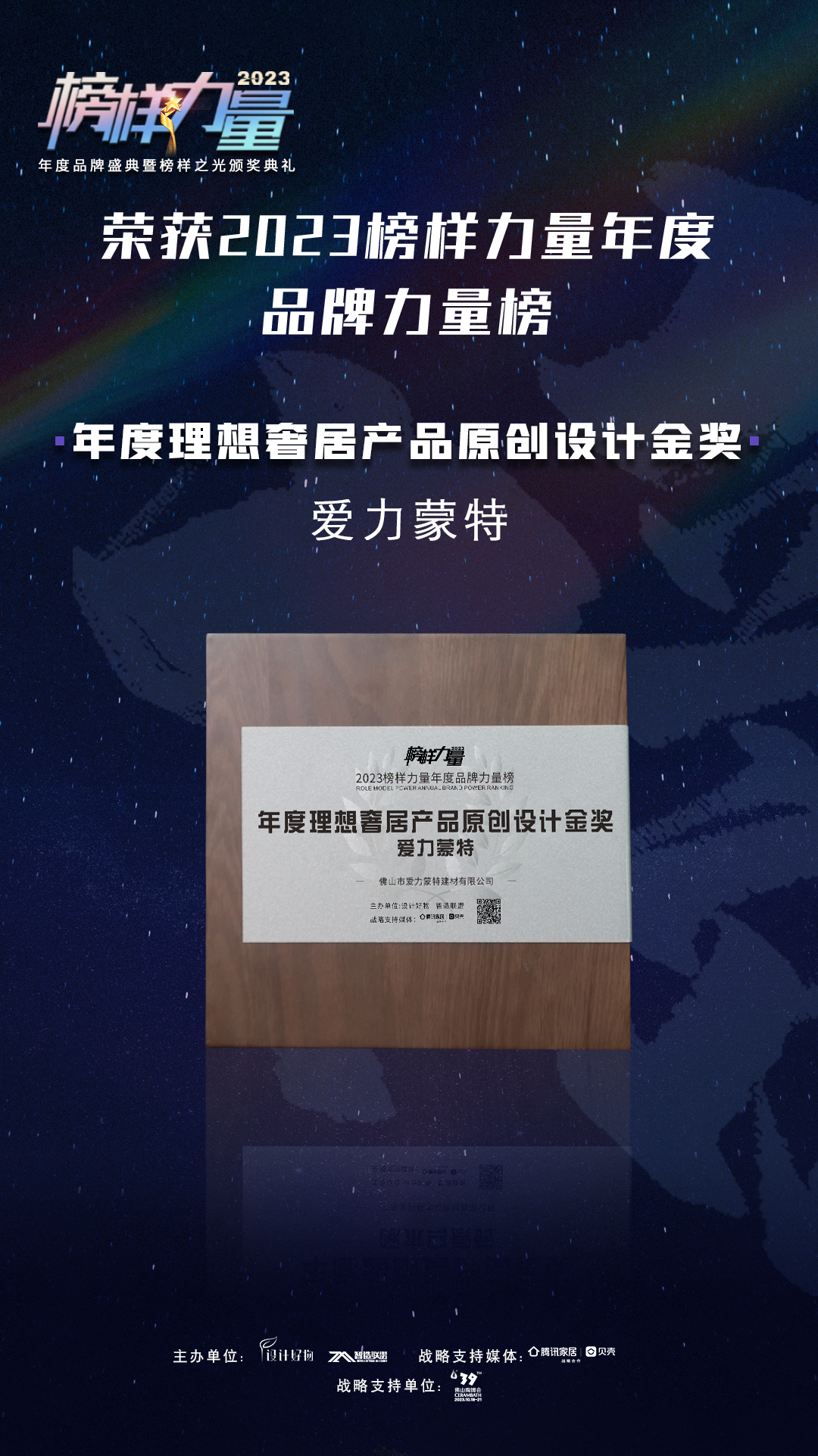 在本次颁奖盛典中,爱力蒙特凭借强大的综合实力和前瞻性的产品创新研发理念脱颖而出,荣登“榜样力量”榜单,向行业展现出品牌“逆势飞翔”的强劲生命力,以及再次印证设计驱动型品牌的强大韧性和巨大潜力。