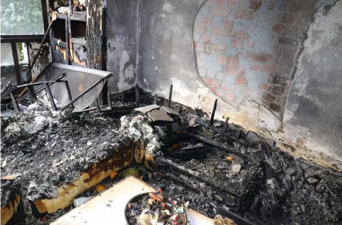 2023年7月14日,江西省九江市浔阳区某居民家中突发大火,消防救援人员到场后迅速对火势展开扑救,很快将明火扑灭,所幸未造成人员伤亡,但整间卧室已被烧得面目全非。经调查,火灾原因系手机充电器插在插线板上没有拔,从而引发电气火灾。
