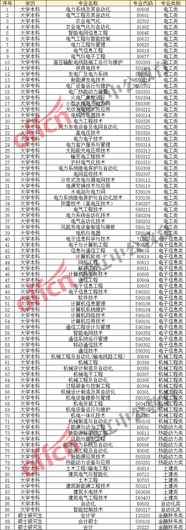电工类、电子信息类、机械工程类、热能动力类、自动化类、土建类等专业大学专科及以上学历,财务类专业研究生学历,