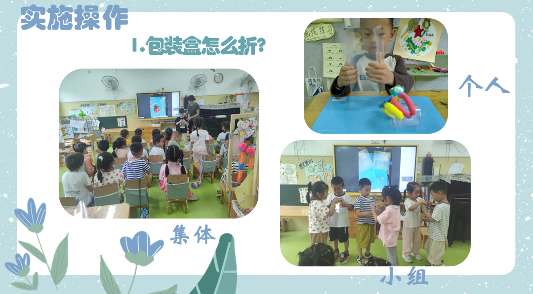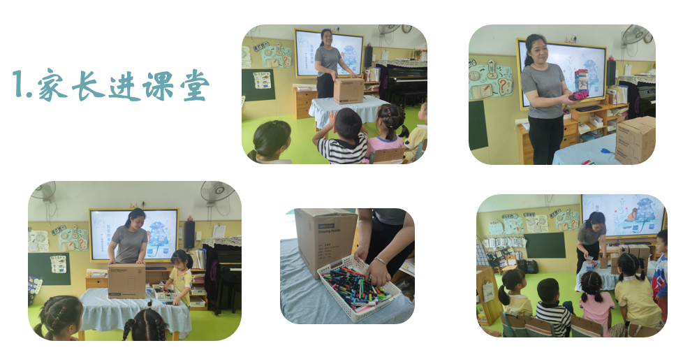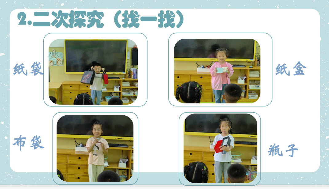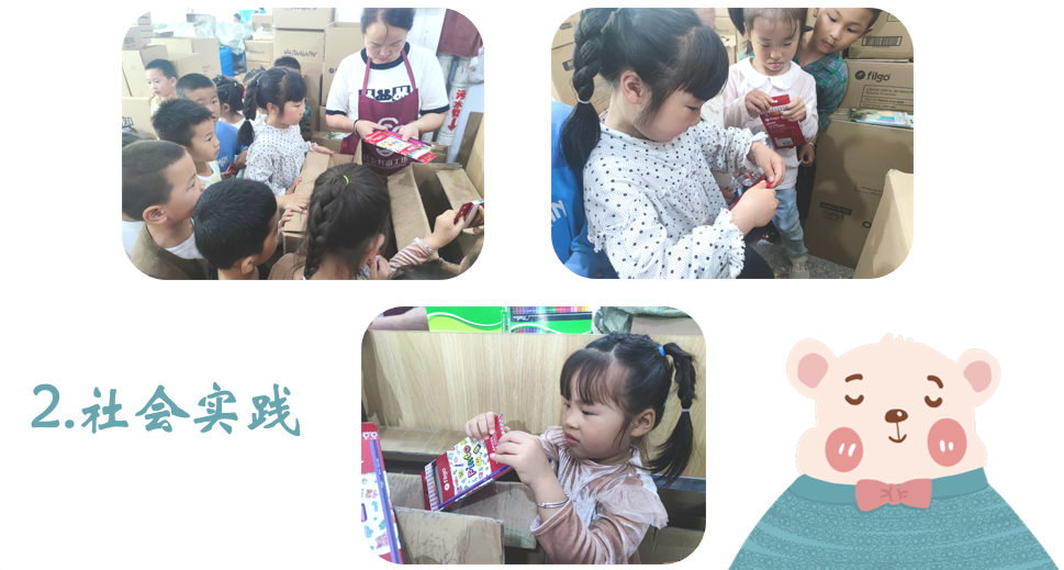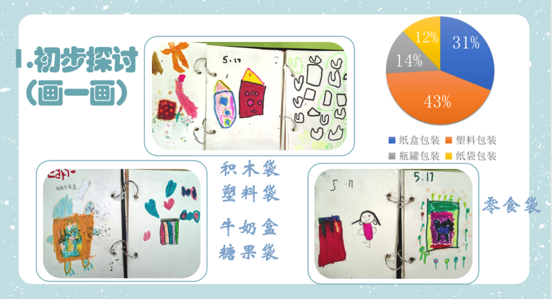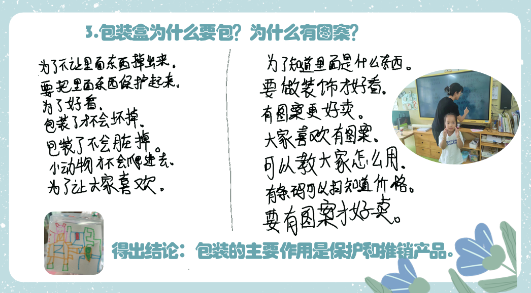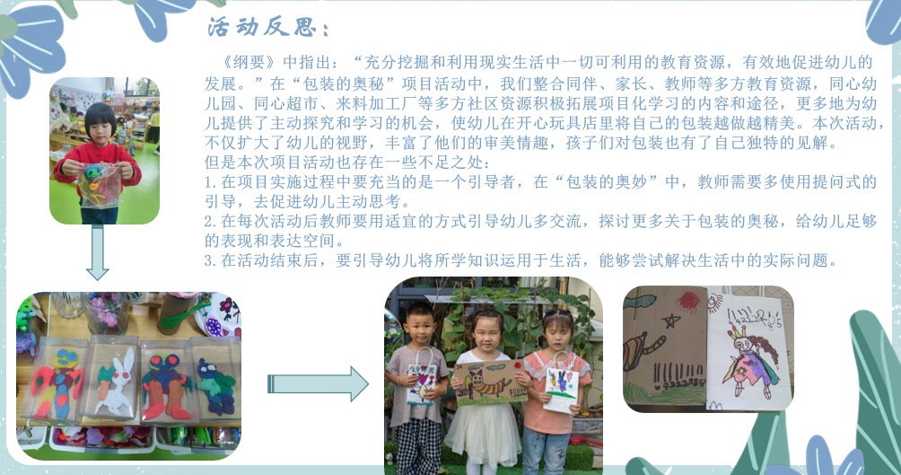 在这里借助家长力量,使家长融入幼儿园课程,通过走出去,带进来的方式,开拓幼儿视野,使幼儿对包装有更深刻的认识。