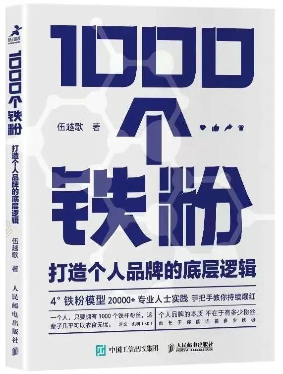 书中精华分享:✔️打造个人品牌并不是要你讨好、改变所有人,而是要吸引、连接同频的人。你越真、越强,主动找你的同路人就越多。✔️长期主义不是考验一个人的毅力的,它考验的是一个人全局思考的能力。✔️千万不要为了变现而变现,任何一种变现都应该是为了更好地服务目标用户、为用户解忧或解惑。就是不论你卖什么,凡是跟你有关的,他都乐意付费购买;不仅自己买,还无偿地、自发地发动身边的亲朋好友一起购买;如果有人提出反对意见,他还会据理力争、捍卫你的形象。✔️4°铁粉模型=辨识度+专业度+连接度+价值度。辨识度,让粉丝记住你;专业度,让粉丝认可你;连接度,让粉丝信赖你;价值度,让粉丝奖赏你。4°铁粉模型的核心思想关注的不仅仅是流量,还有流量背后的人与价值。✔️做个人生活的分享者,分享你的日常琐事,分享你读过的书,分享你种的水果蔬菜,分享你的学习成长……总之,把你日常生活、工作中那些正面的、温暖的、真实的心情与故事展现给众人。如此坚持下去,你一定会吸引你的同频者,影响某一部分人。-end-