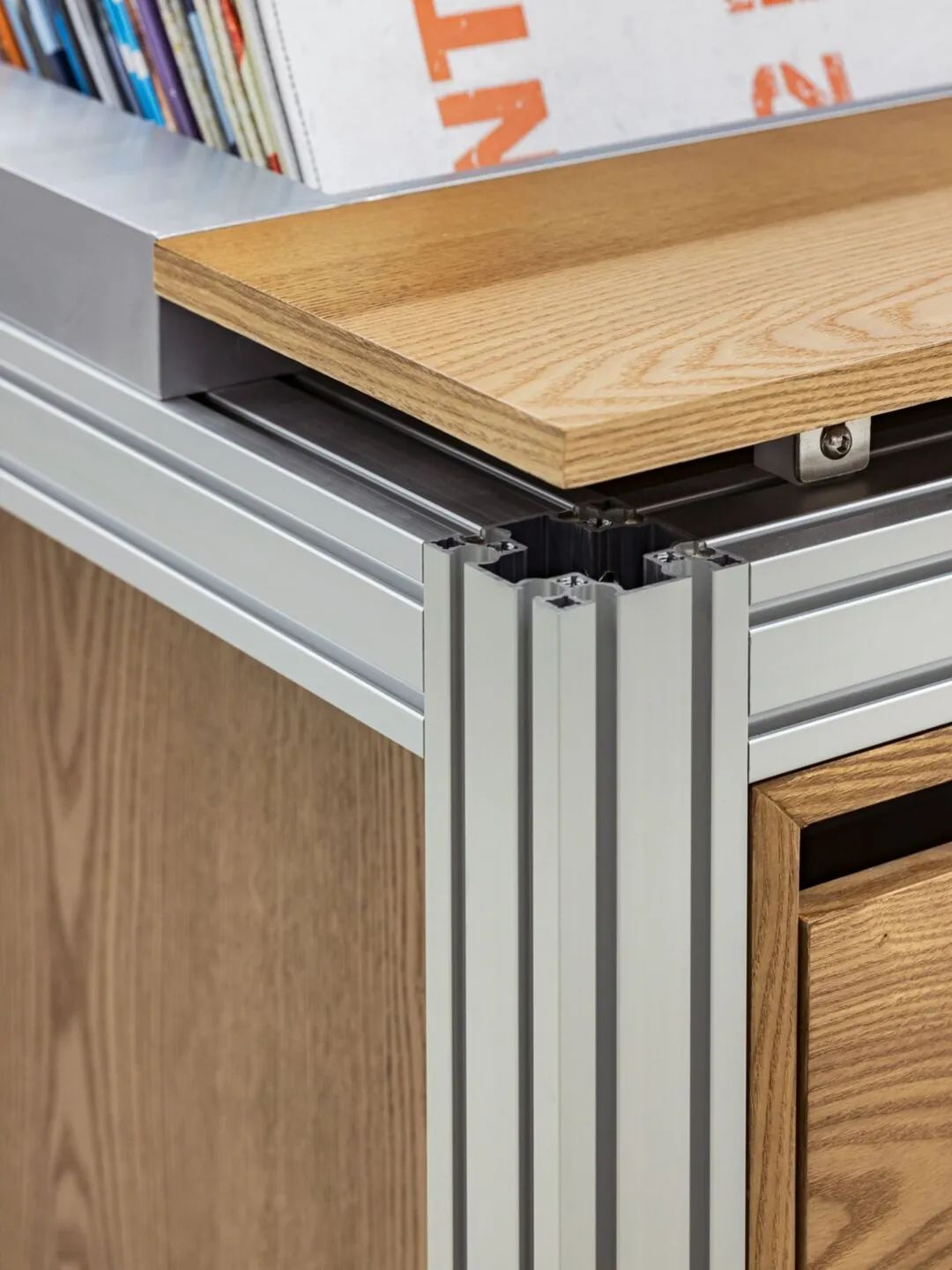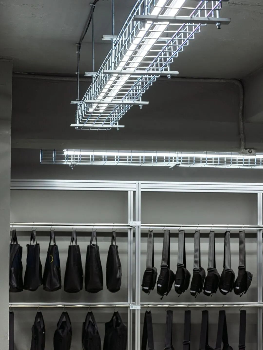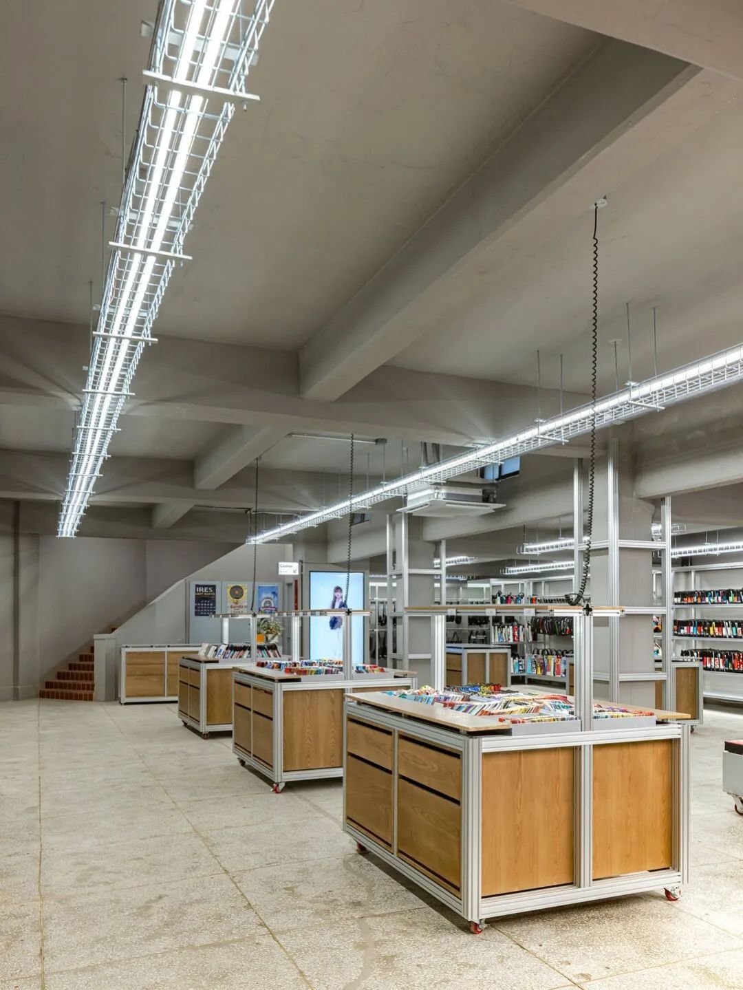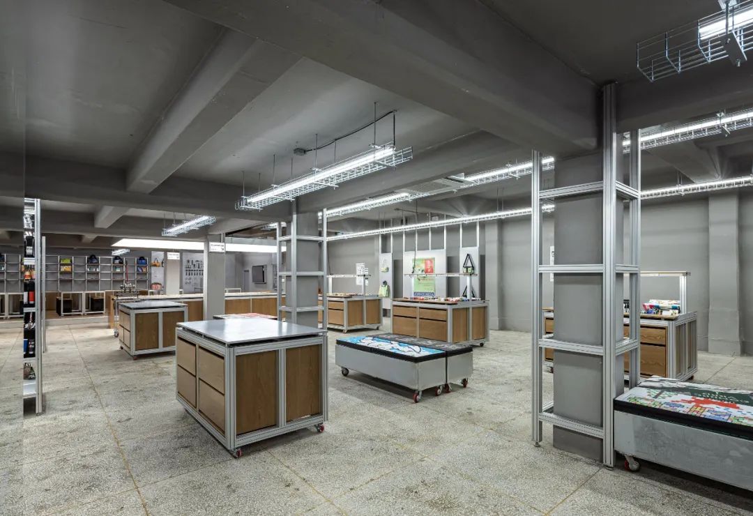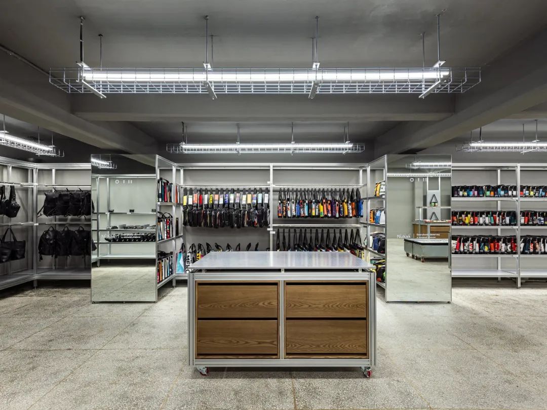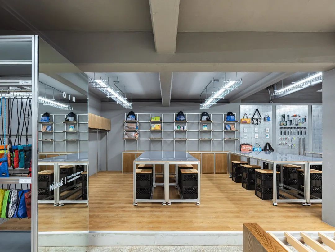 在设计过程中,展示形状是Nukak的设计师们的出发点。他们灵感来源于各种材料的多样性和尺寸的不同。为了展示这些产品,他们选择了广泛应用于工业现场的铝型材,并根据产品的陈列方式和门店的操作行为进行家具配置。通过合理地结合木材,他们成功地将机械感觉与家具设计相结合,创造出独特的风格。