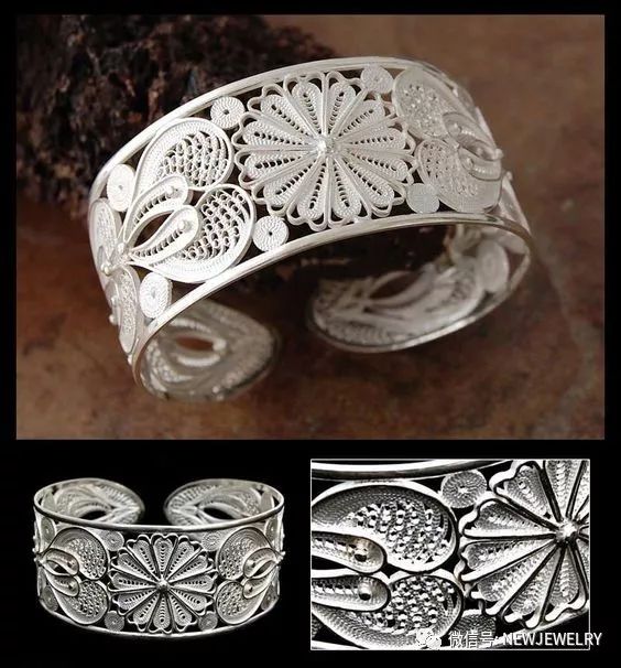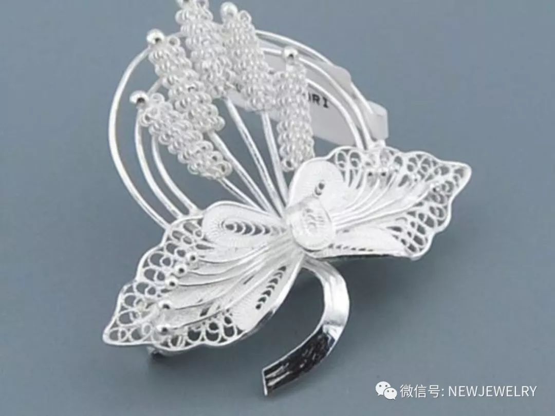 花丝工艺FILIGREE:又称为细金工艺,累丝工艺。俗称花样丝,“花丝”。即用各种不同型号(粗细)的金、银、铜素丝搓制而成的各种带花纹的丝。用这些花样丝,经过不同的工艺制作出精致的产品,这一制作过程称为花丝工艺。