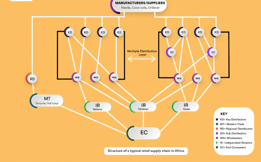 图:非洲典型零售供应链的结构,图源:Techcabal
