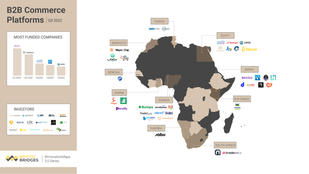 Briter Bridges 的数据显示,自 2008 年以来,28 家提供 B2B 商务产品的非洲初创公司总共筹集了超过 4.7 亿美元的资金,其中仅在 2021 年至 2022 年期间就有 90% 的 B2B 电子商务初创公司获得投资。