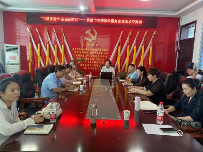 为深入贯彻落实党的二十大精神和习近平总书记关于家政服务的重要指示,有力落实家政进社区相关文件精神。8月11日,界首市妇联联合商务、人社、工商联等部门,召开“巾帼绽芳华 奋进新时代”—界首市巾帼家政服务企业座谈交流会,共30余人参加座谈会。