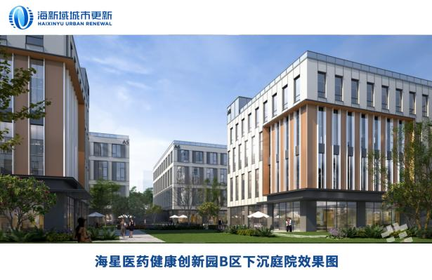海星医药健康创新园B区位于永丰产业基地。该项目由海国投集团一级监管企业海新域城市更新集团(以下简称“海新域”)进行更新改造,规划建筑面积约61000平米,建筑内容为集生物医药研发中试、研发实验、配套服务用房、设备用房及地下停车库。园区内共有5栋生物医药厂房,其中3栋双拼厂房,2栋独栋厂房,地上总计3层,首二层高度均为6米,满足各种类型生物医药类型研发、中试要求,双拼厂房每户设置独立的出入口及货运系统,实现可分可合,满足大中小型企业的需求;地下一层各楼栋紧邻下沉庭院,户户采光,为企业营造更舒适的办公环境;地下二层为地下车库。
