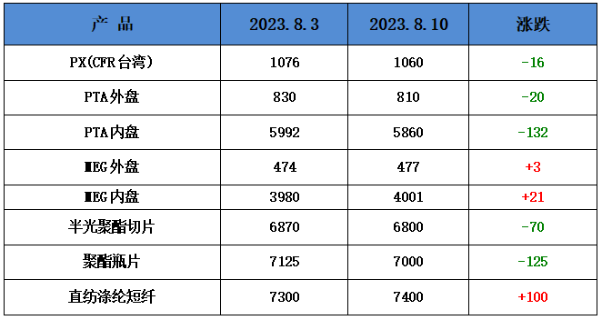 PTA方面,本周PTA价格小幅走低,目前PTA主流报价在5800-5900元/吨左右自提。本周PTA表现出现波动,下游支撑不足,预计PTA未来或小幅走低。