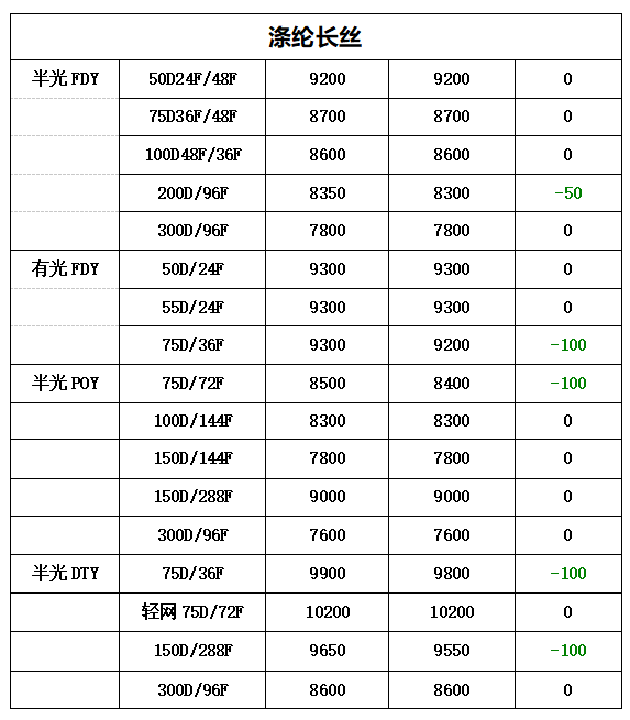 涤纶长丝方面,周内原油及原料区间震荡,聚合成本略有下滑,成本支撑不足。而终端需求冷清,涤纶长丝市场业者观望心态明显,周内仅部分时间跌价工厂产销数据表现尚可,整体表现一般。在此影响下,周内涤纶长丝工厂报价涨跌互现,市场重心窄幅震荡。