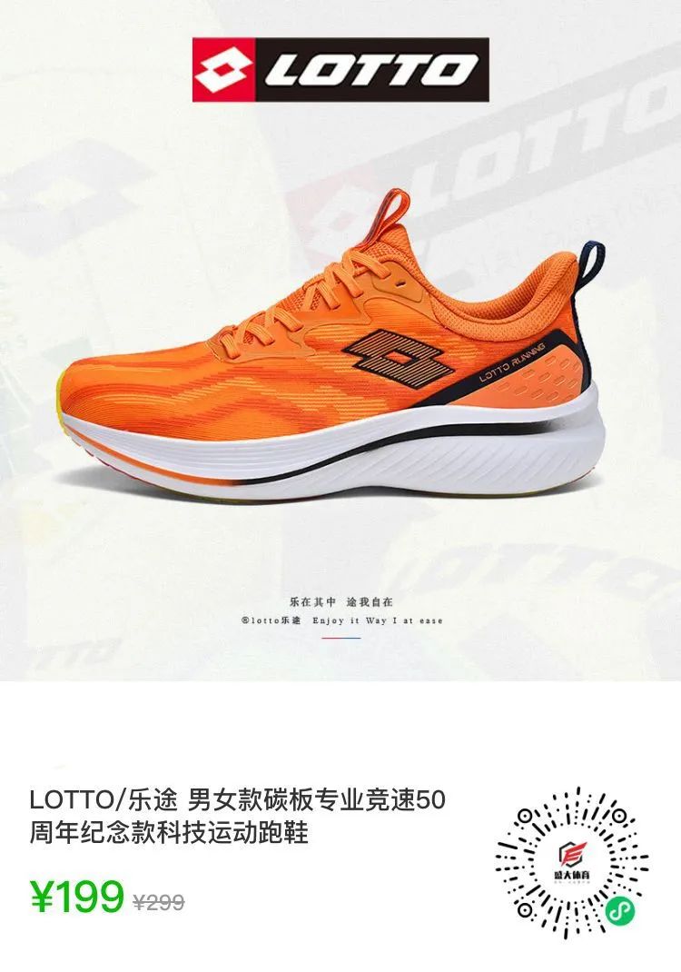 这可是国际专业跑步装备领导品牌——乐途LOTTO重磅推出的50周年系列款,配置完全达到了目前主流碳板跑鞋的技术水准!而且LOTTO乐途是意大利的国民运动品牌(类似于L宁、an踏在国内的地位吧),在国际上能与某迪、某克三分天下。历来合作的也都是冠军运动员、各国国家队,实力真的强!作为周年纪念款,这款鞋搭载了LOTTO顶尖的科技,高回弹、轻量化、耐久性就是它突出的特点。在超临界状态下,通过氮气将轻弹赋能于中底,落地有缓震,抬脚有回弹,脚感超舒服,跑起来也更轻松。中底除了核心科技“氮科技”,“轻弹”碳板推动片也成了此次升级的重点!基于人体工学的3D仿生足型碳板,提升了整体的稳定性,抗扭转、防崴脚,穿着跑步、跳绳、跳操,都能帮你牢牢稳住身体!鞋底轻软回弹,还有稳稳的支撑性,走路、运动都能像风一样轻盈。并且这款鞋40码单只重量仅约216.5g,大约一盒牛奶的重量!轻量化的同时,依然保持跑鞋专业级水准的可太难得了~鞋面也采用了备受跑者青睐的4D耐劳纱材料,集齐轻、透、韧的特质,让你由内而外享受到“脚下生风”的快感~鞋子放置在近90°的坡面依然稳稳不动,这抓地力不管是运动穿,还是通勤穿都安全感满满~女款35-40码,男款39-44码,男女同款,三色可选,自己穿、当情侣鞋都时髦得很。大家都知道碳板鞋就是昂贵的代名词,LOTTO 50周年回馈粉丝,那必须拿出足够的诚意来:这价格绝对是碳板跑鞋里的性价比天花板,拿到手你就知道有多赚了~