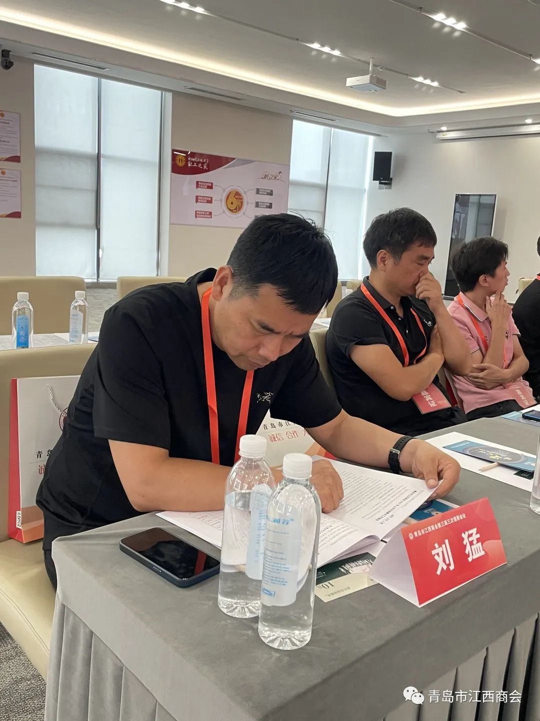 轮值会长易凡向理事会提交《青岛市江西商会申请加入赣商总会的请示函》,经理事会审议并举手表决审议通过。商会将以正式向赣商总会提交成为赣商总会的第五个计划单列市团体会员申请。