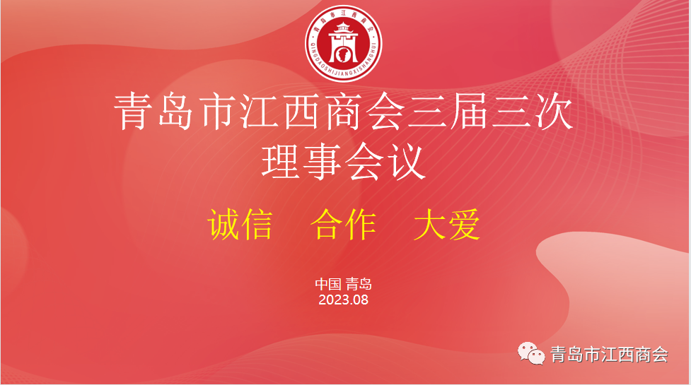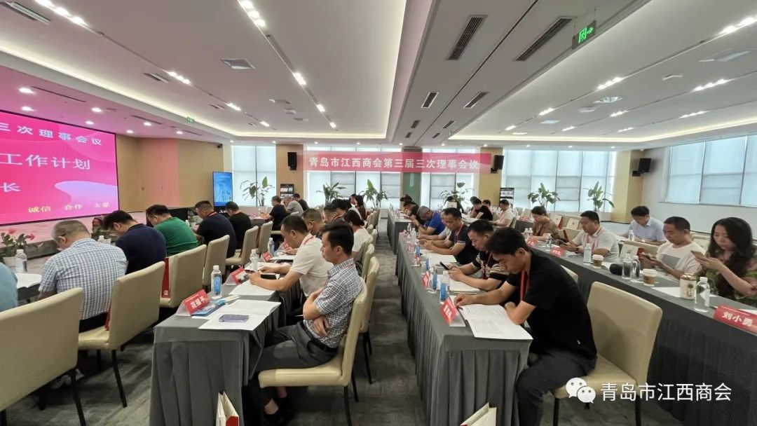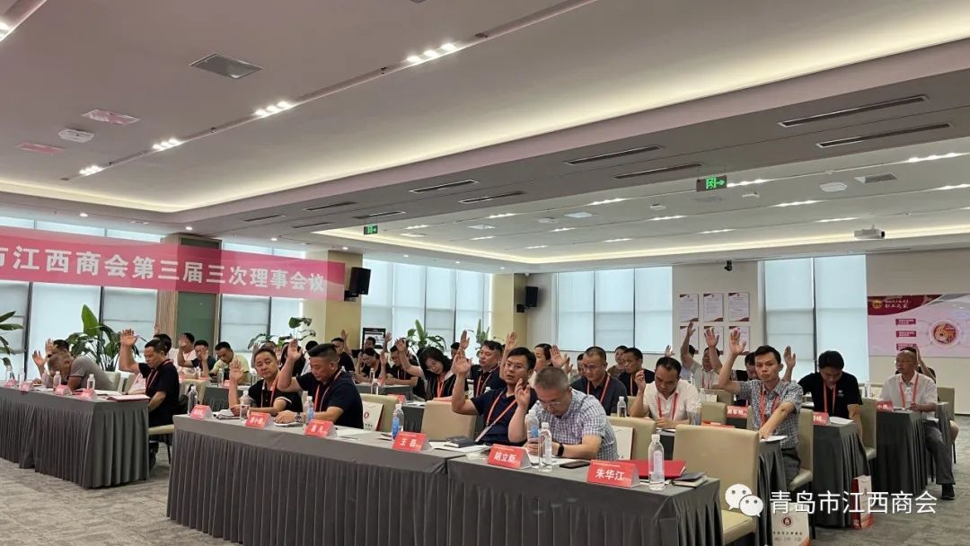 8月12日下午,青岛市江西商会第三届三次理事会议在青岛天安科创城二楼会议室召开。青岛市江西商会会长蔡向荣,支部书记杨润根,名誉会长翟型文,执行会长魏俊辉,秘书长朱华江,监事长袁小俊,常务副会长王磊、陈金根、易凡,商会副会长、理事及部分会员代表共计50多人参加会议。会议由朱华江秘书长主持。