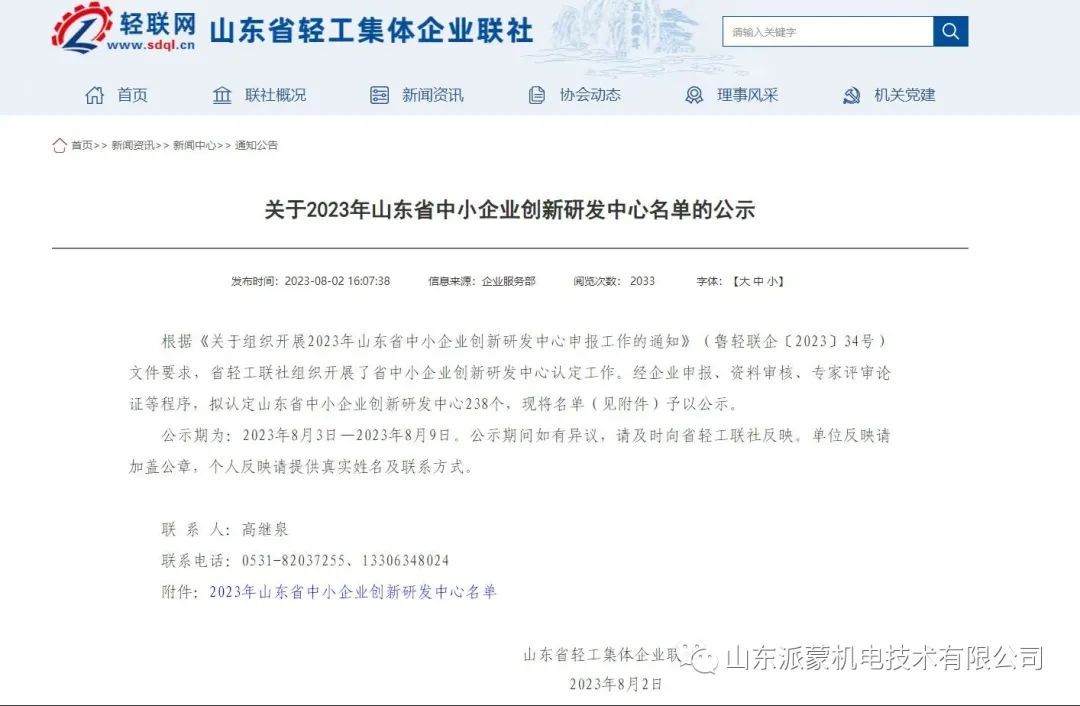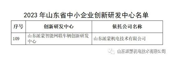 近日,山东省轻工集体企业联社发布了2023年山东省中小企业创新研发中心公示名单,我公司申报的“山东派蒙智能网联车辆创新研发中心”位列其中。