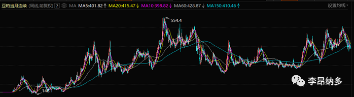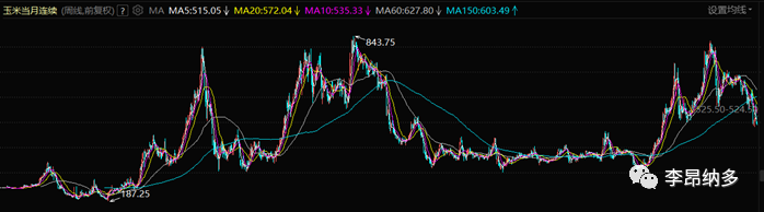 其中饲料成本占比最大,约占总成本的50%-60%,其次是仔猪成本,占总成本的25%左右,接着是人工成本,占总成本的20%左右,饲料成本中,主要是豆粕和玉米,我们从豆粕期货和玉米期货近20年的价格走势上,也不难看出,饲料成本是在不断上涨的。