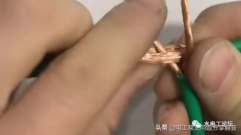 第四步:用手开始将左边的一股线与主线拧到一起。