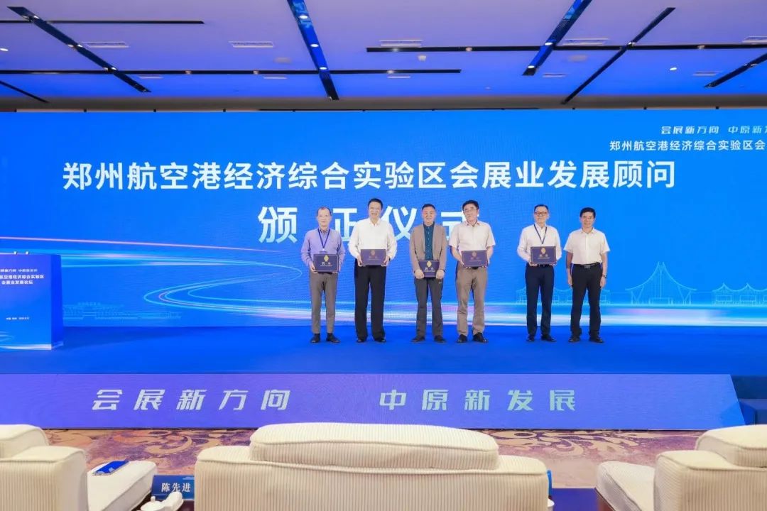 论坛上进行了“郑州航空港区会展业发展顾问”颁证仪式。为助力航空港区会展业发展,提供会展业智慧支撑,航空港区管委会特聘任国际展览业协会(UFI)名誉主席、全国会展业标准化技术委员会主任、上海市会展行业协会党委书记陈先进,中国会展经济研究会首席研究员储祥银,中国农业机械流通协会副会长兼秘书长陈涛,英富曼(中国)董事副总裁张明,UFI中国会员俱乐部秘书长、四川省会议展览业协会荣誉会长李涌为“郑州航空港经济综合实验区会展业发展顾问”,共同推动航空港区会展业的高质量发展。