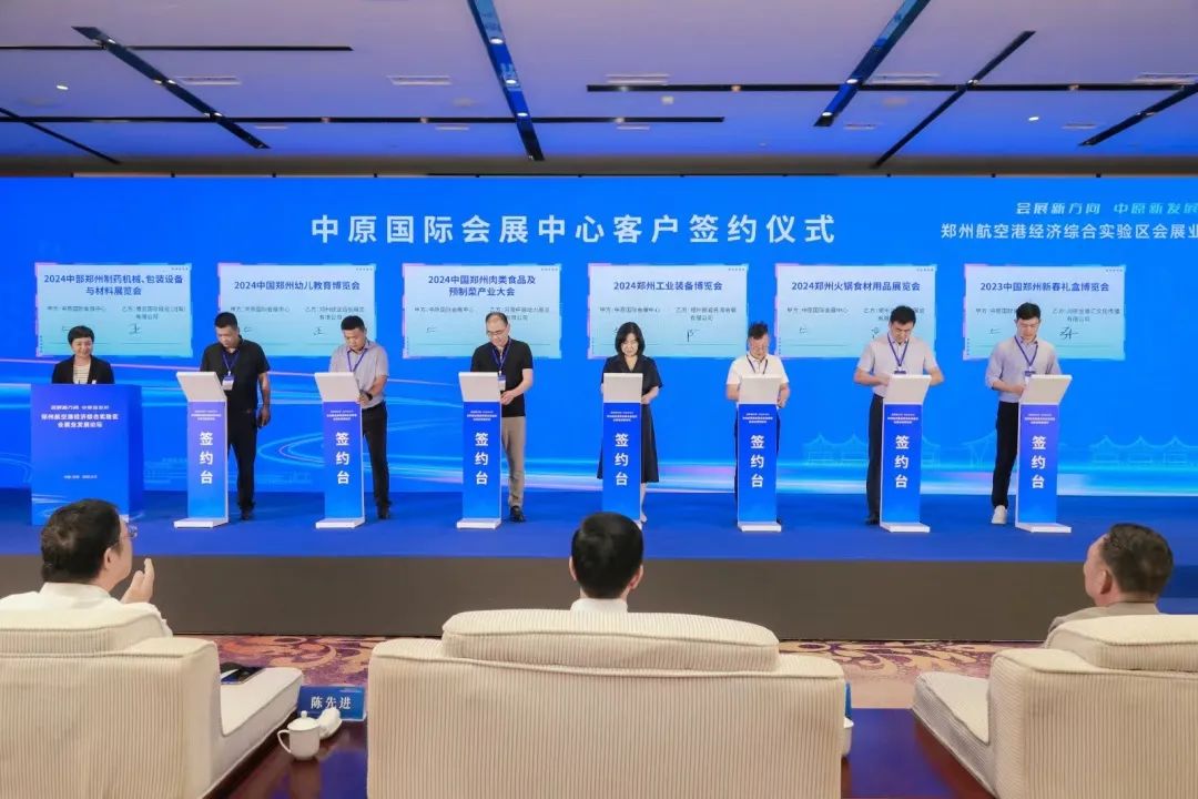 为推动中部会展业创新发展,由郑州航空港经济综合实验区管委会主办、航空港区投资促进局、航空港区会展商贸产业建设指挥部、郑州国际会展中心有限公司承办的“会展新方向、中原新发展--2023年郑州航空港经济综合实验区会展业发展论坛”于8月12日在郑州航空港区成功举办。论坛邀请了国内会展业专家以及河南本地主办方参会交流,隆重推介了备受期待和关注的中原国际会展中心,并在论坛上举行签约仪式,与6个展会项目和22家会展企业建立了合作关系。论坛期间还举行了“郑州航空港区会展业发展顾问”颁证仪式。