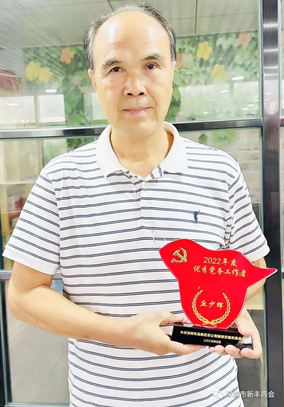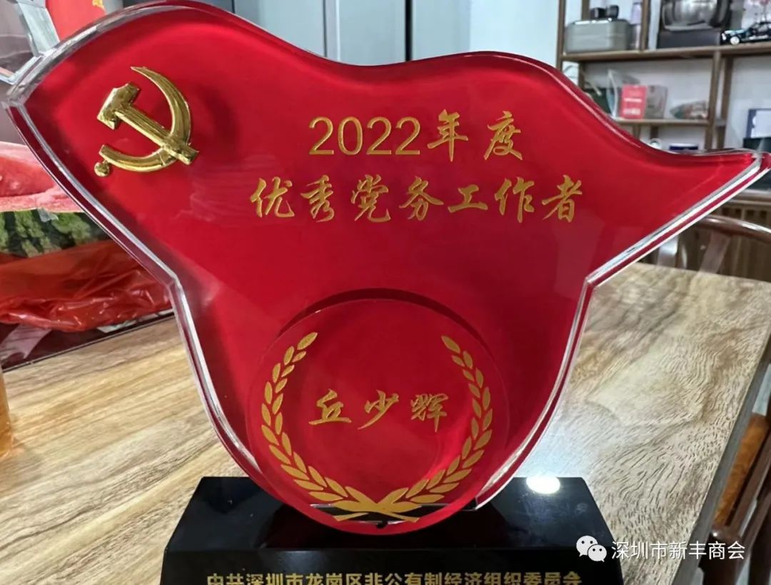 2023年3月,由于丘书记带领商会党支部,抓党建工作表现突出,取得了同类商协会更加突出的成绩,丘少辉书记被龙岗区非公有制党委授予“优秀党务工作者荣誉称号!