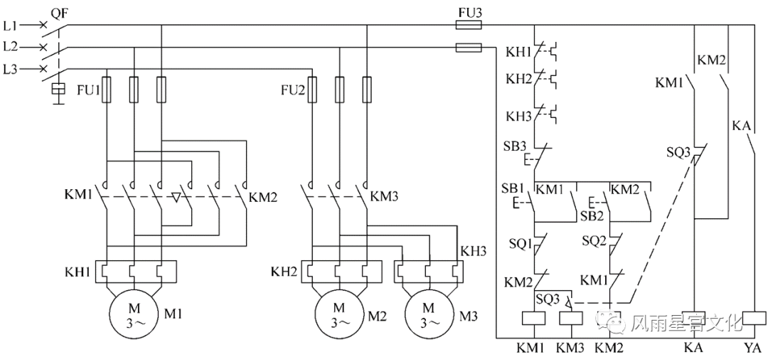 本专用机床共有三台笼型异步电动机,滑台电动机Ml的功率为1.1kW,需正反转;两台动力头电动机M2和M3的功率为4.5kW,只需要单向运转。试设计该机床的电气控制线路。