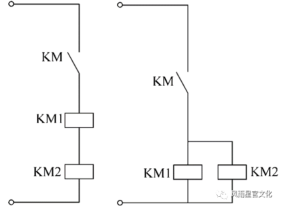 在线路中采用小容量继电器的触头断开和接通大容量接触器的线圈时,要计算继电器触头断开和接通容量是否足够。若不够,必须加大继电器容量或增加中间继电器,否则工作不可靠。