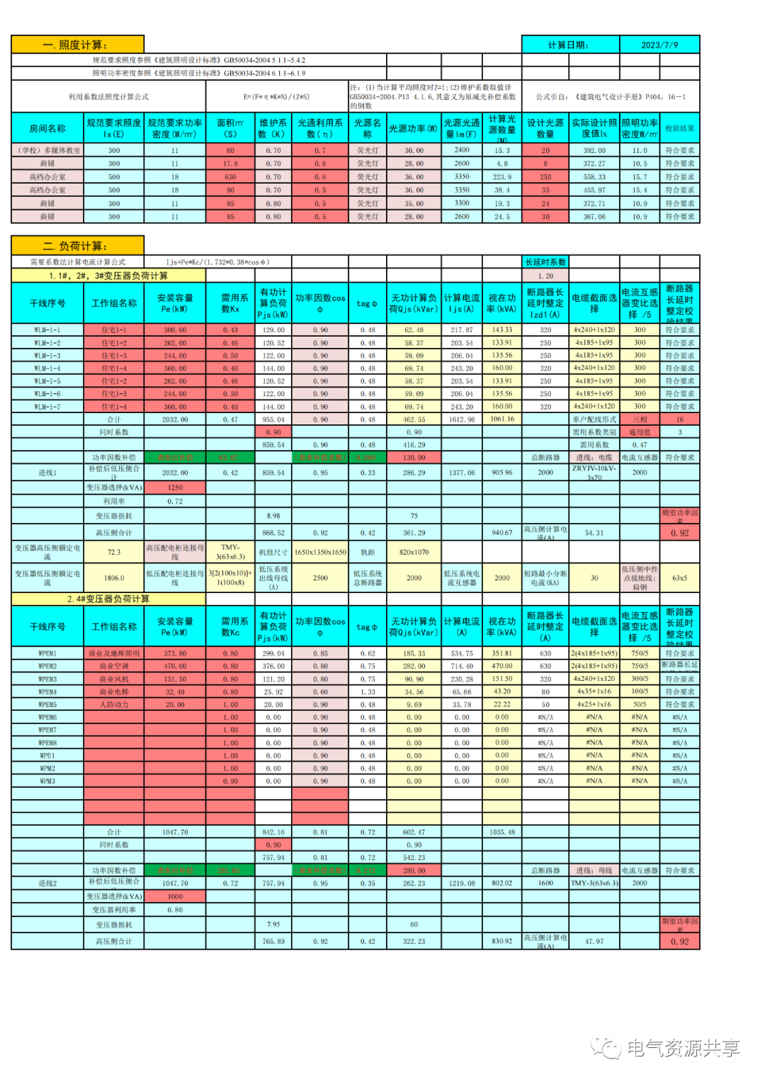 | 数据选自04DX101-1《建筑电气常用数据》P53,《工业与民用配电设计手册》第三版P499 | |||