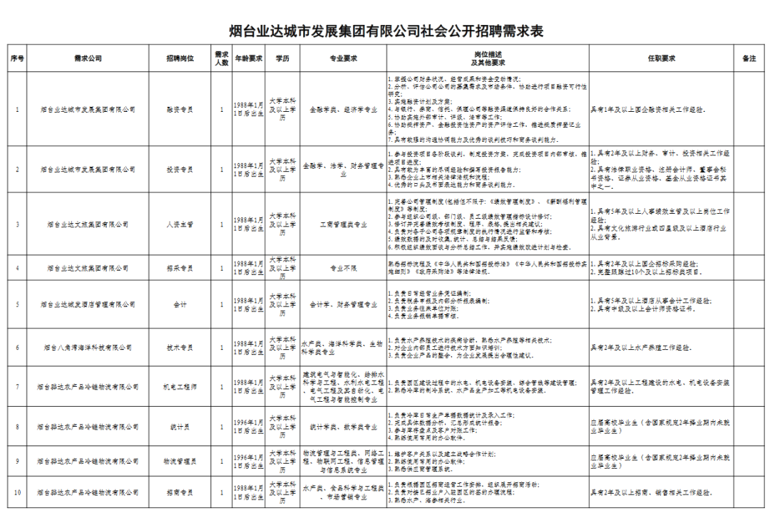 烟台业达城市发展集团有限公司社会公开招聘公告
