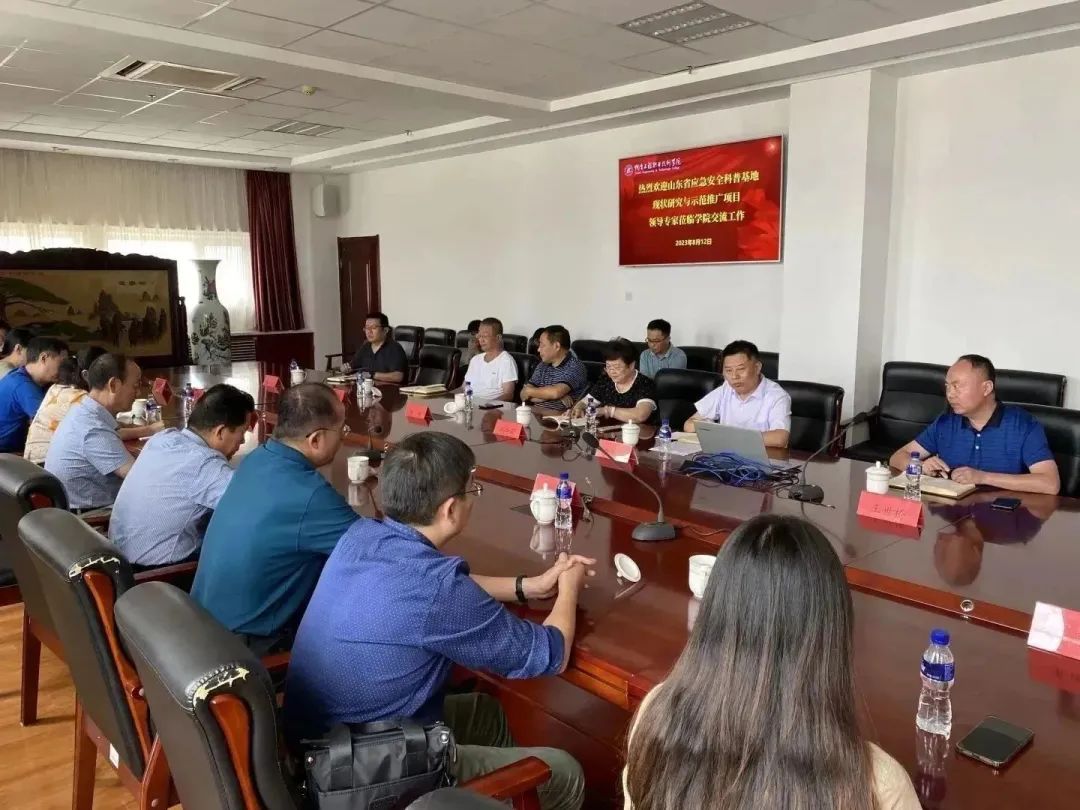 8月12日,山东省科普产业促进会会长李信培、书记赵学敏,省科协学会部处长刘玮等一行15人来学院就“山东省应急安全科普基地现状研究与示范推广”项目进行考察调研工作。学院党委委员、副院长巩华荣热情接待了工作组一行,学院实训处、教务处、安全与应急管理系负责人及教师代表参加了现场交流。