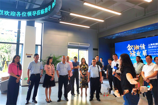 8月10日上午,谢会长又带领回湘考察团来到岳麓山大学城科技城管理委员会进行参观考察。原长沙市驻上海联络处主任苏准,陪同参观考察。谢东海一行参观了中建智慧谷数字展厅,详细了解园区整体规划、产业布局、运营体系和创新创业生态等方面的情况。中建智慧谷“中部科创高地”的定位,得到了谢东海一行的高度评价。企业家代表纷纷表示,此次考察交流不仅加深了对中建智慧谷的了解,也为双方搭建了合作共赢的桥梁。