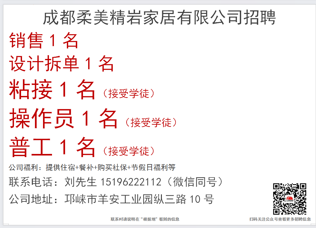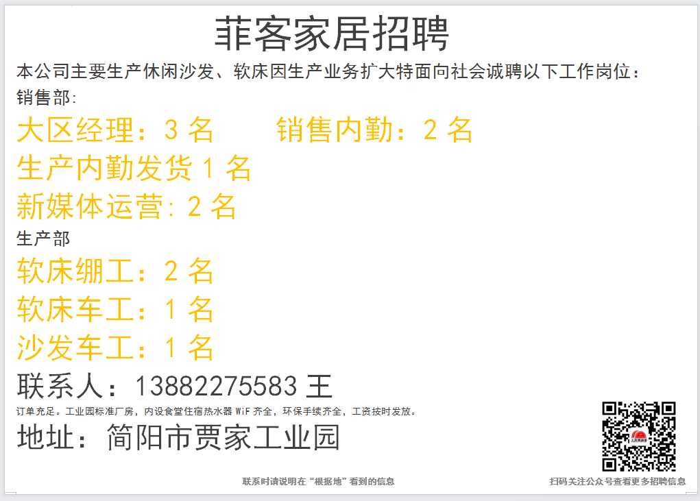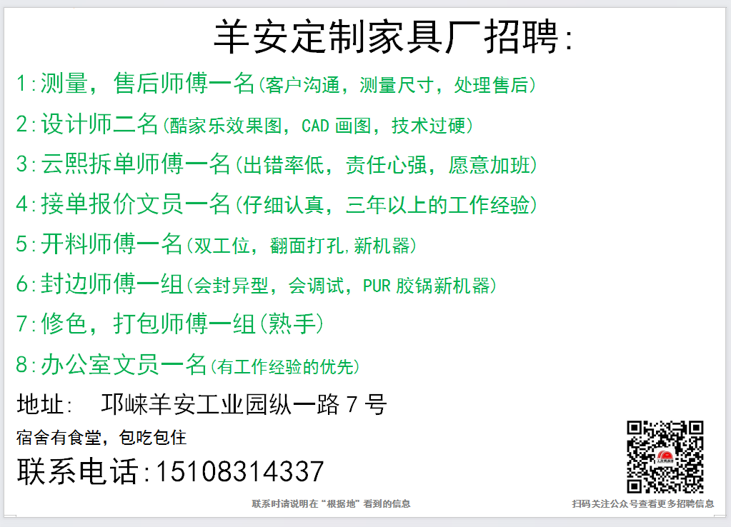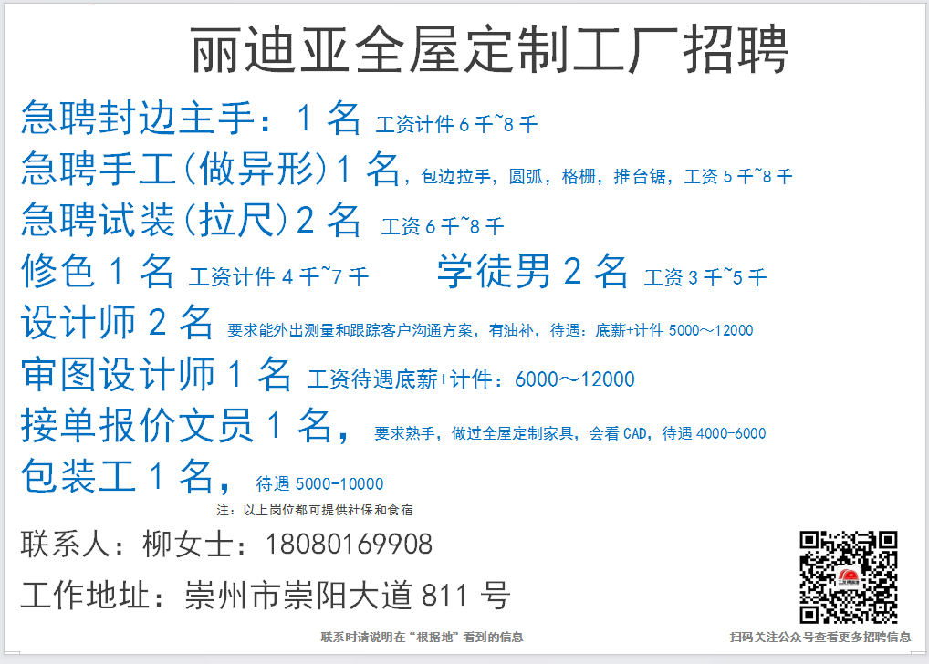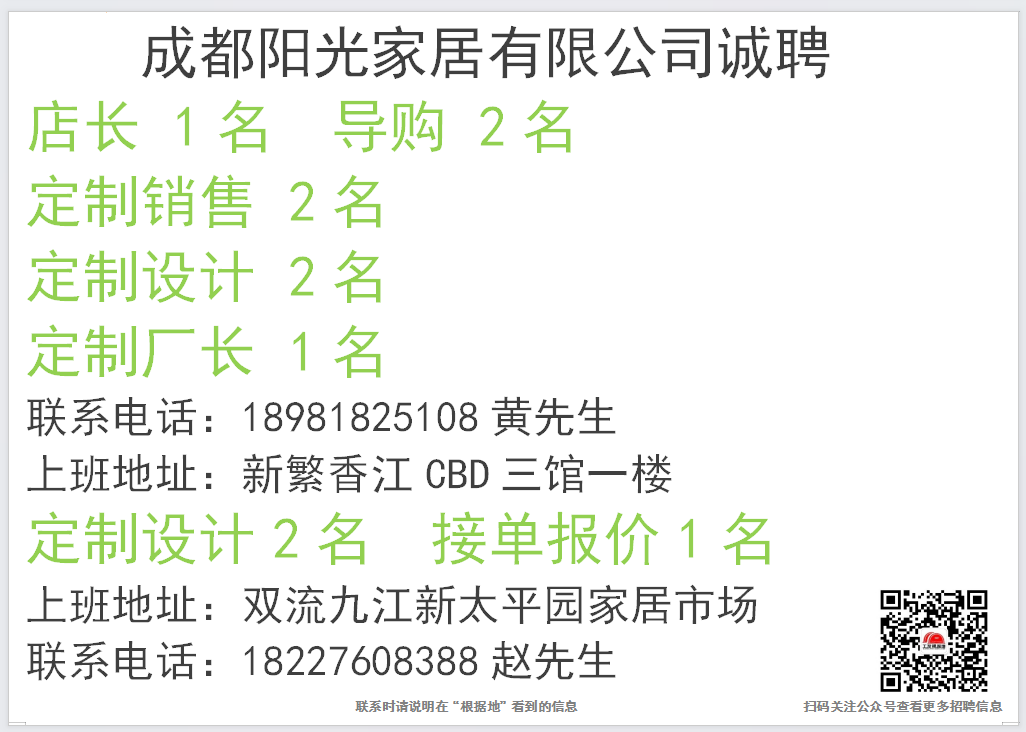点击上面蓝色文字:根据地家居传媒,关注后,30秒内快速发布招聘信息和求职简历。每天海量招聘信息和求职简历等着你。