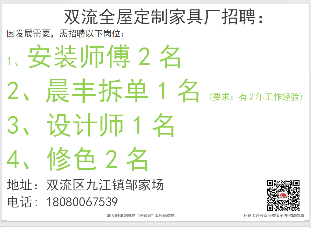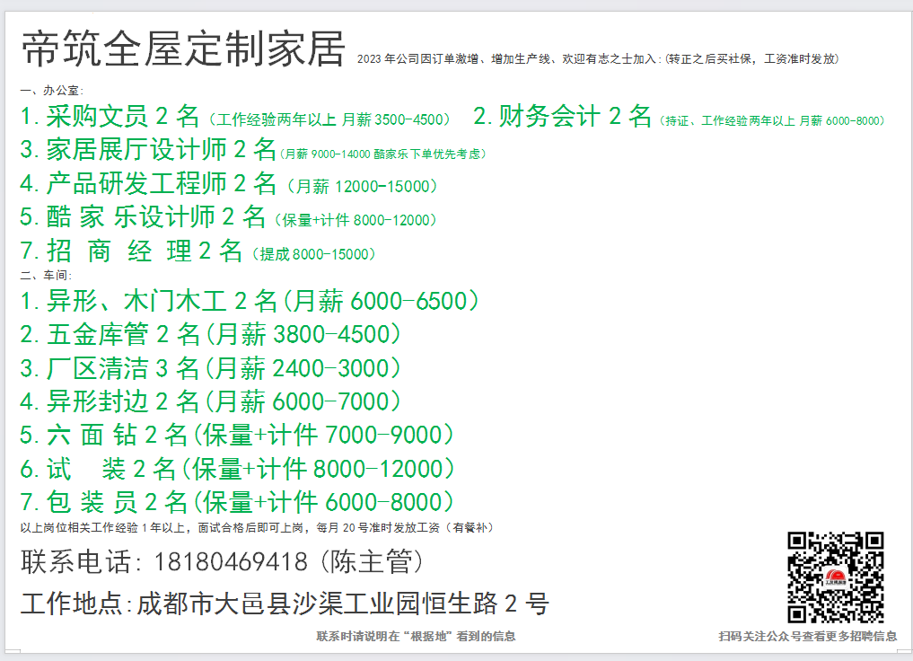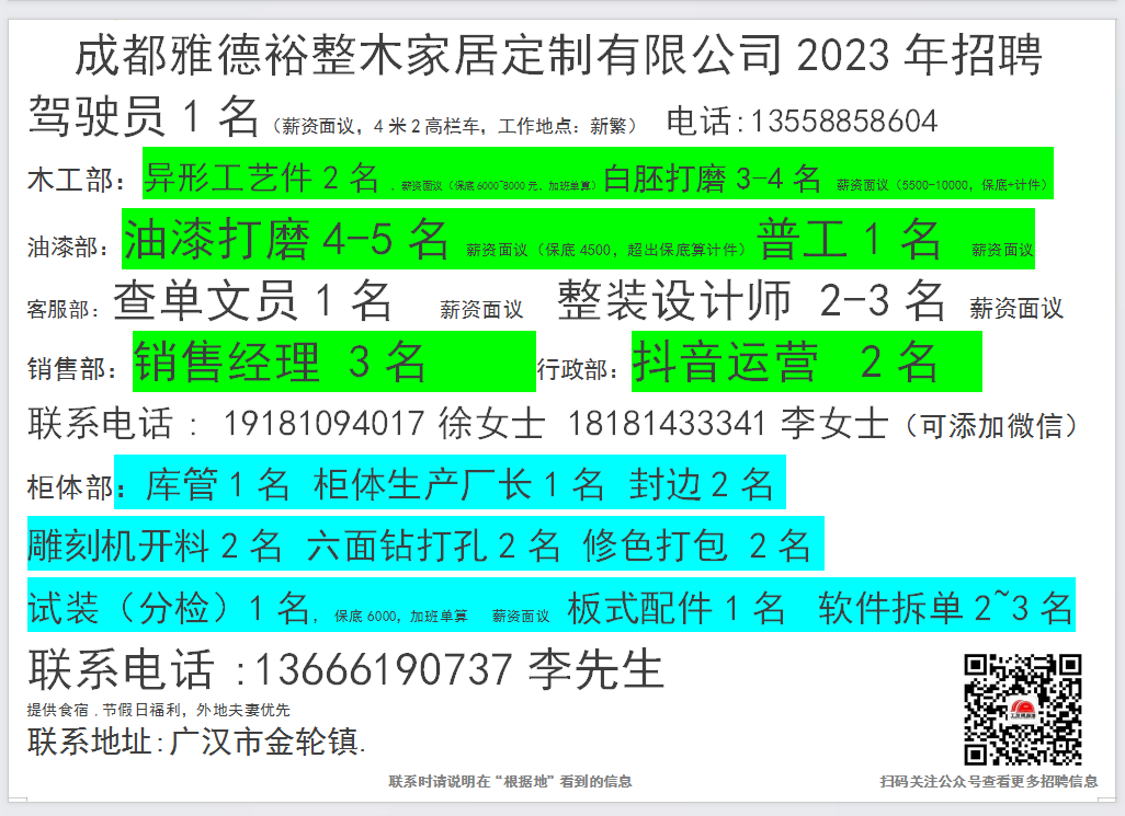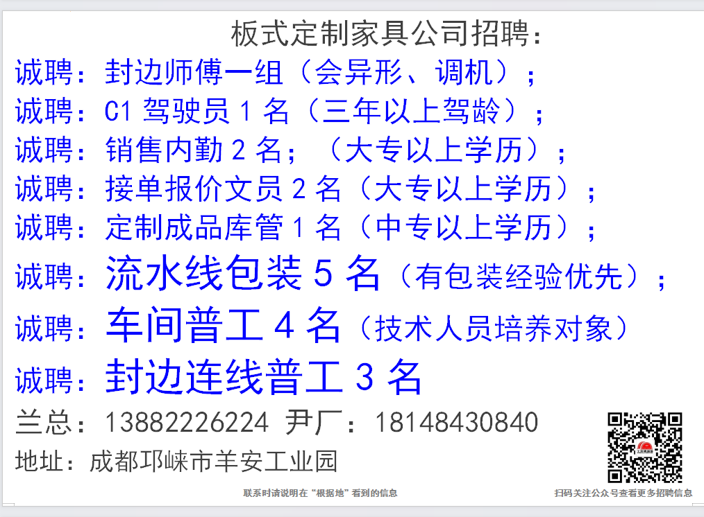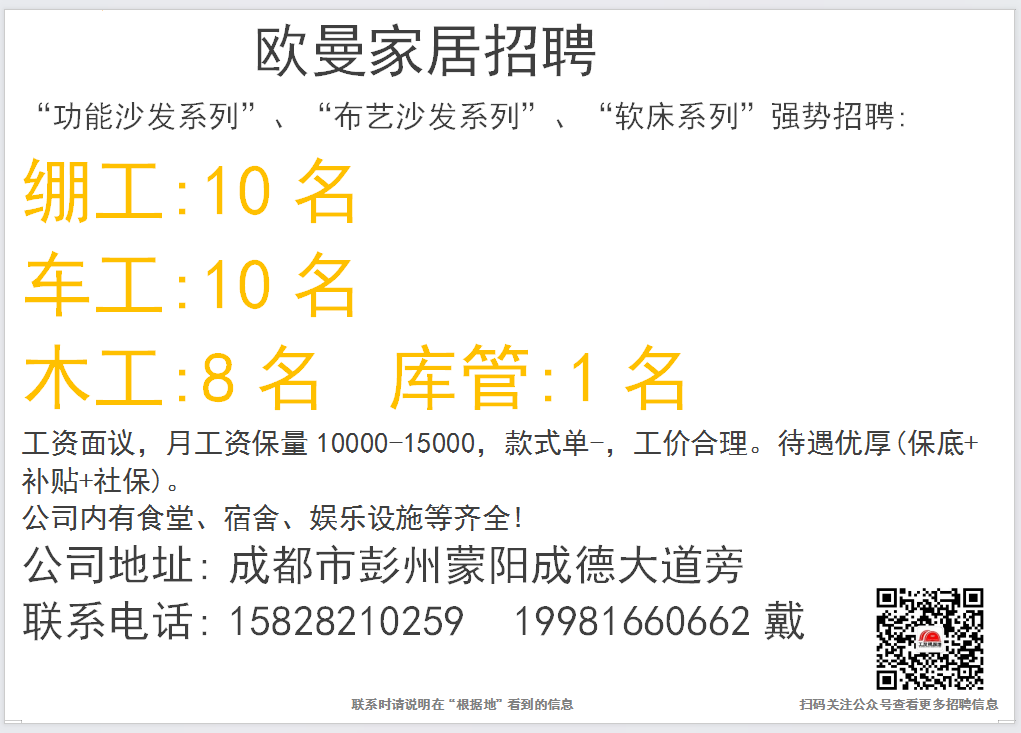 点击上面蓝色文字:根据地家居传媒,关注后,30秒内快速发布招聘信息和求职简历。每天海量招聘信息和求职简历等着你。