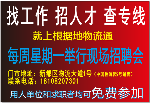 点击上面蓝色文字:根据地物流通,关注后,30秒内快速发布招聘信息和求职简历。每天海量招聘信息和求职简历等着你。