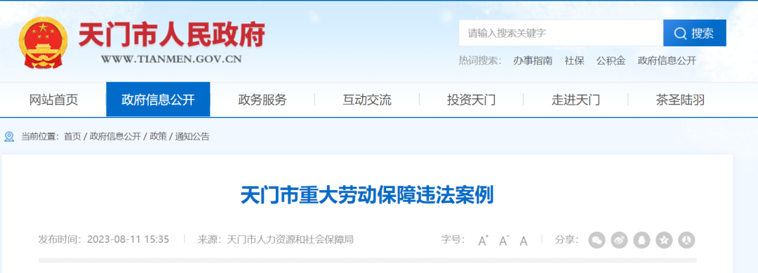 天门市重大劳动保障违法案例