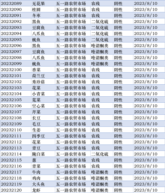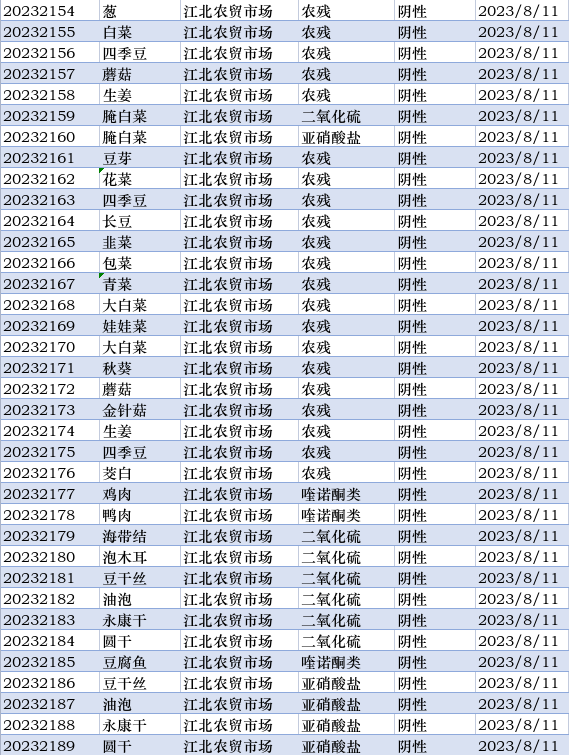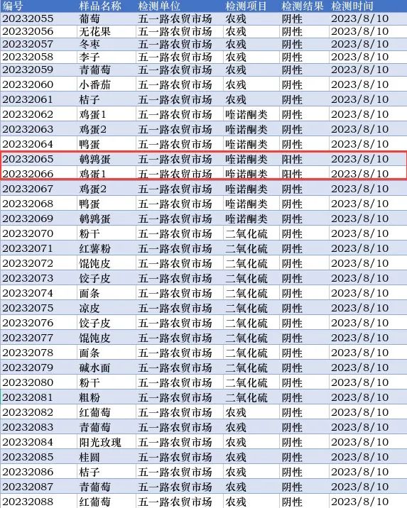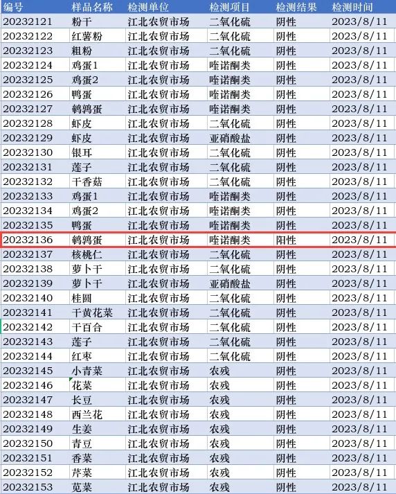 本周快检技术人员共抽取了154批次样品,检测了样品中的二氧化硫、亚硝酸盐、农残、喹诺酮类等有害指标,其中4批次样品,快检喹诺酮类项目结果为阳性,我局立即对不合格样品进行现场封条并下架处理,当天送至第三方检测机构进行定量检测。所有样品检测后统一销毁,杜绝二次上架销售,请广大市民放心购买!