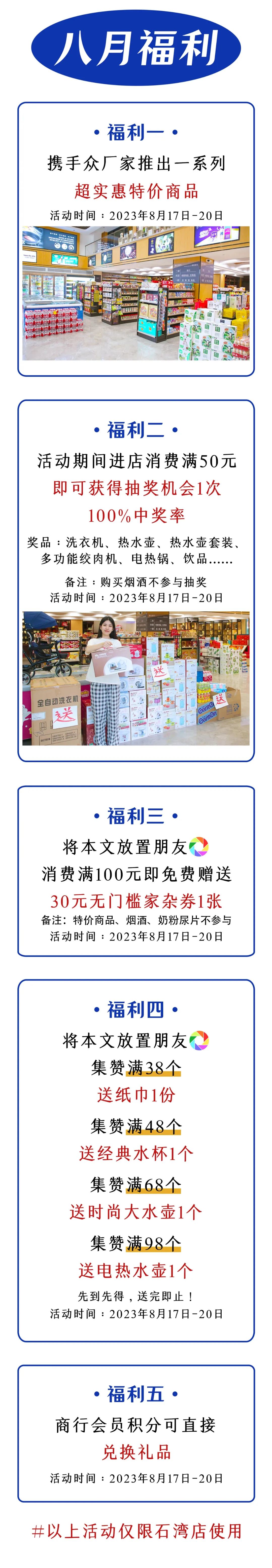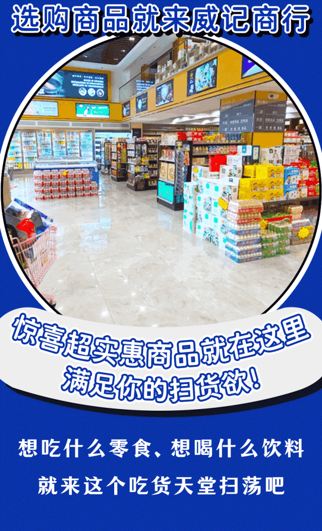 「威记商行」福利扫货日来啦,8月17日-20日,仅限4天!拥有舒适的购物空间,分区清晰摆设清新。现场超多劲爆、超多实惠~位置就在建设西路8号!你喜欢的各种好货都安排妥当了,宅家零食、夏季饮品、雪糕自由、必备粮油、家居用品...这里全都有,而且还是超低价哦!