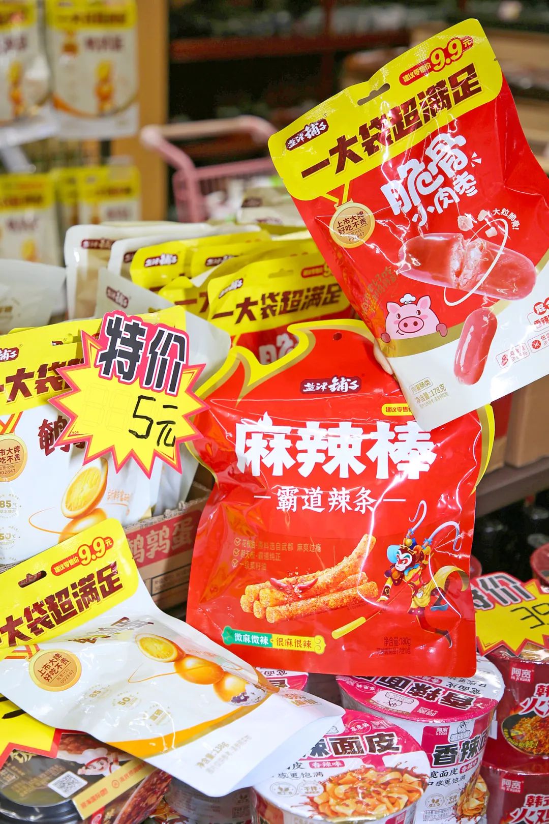 虾条当然要抱着吃才爽啊!入口香脆酥糯,吃起来咔呲咔呲响,无论是小孩还是大人,都无法拒绝!龟苓膏、酸奶、辣条、脆脆面......忍不住想全都带走,多到让人眼花缭乱!
