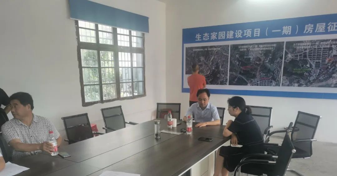 集团总会计师夏丹丹到生态家园(一期)房屋征收指挥部向县委委员、副县长叶锦明汇报房屋征迁资金有关情况,县资规局、征收办相关人员参加。