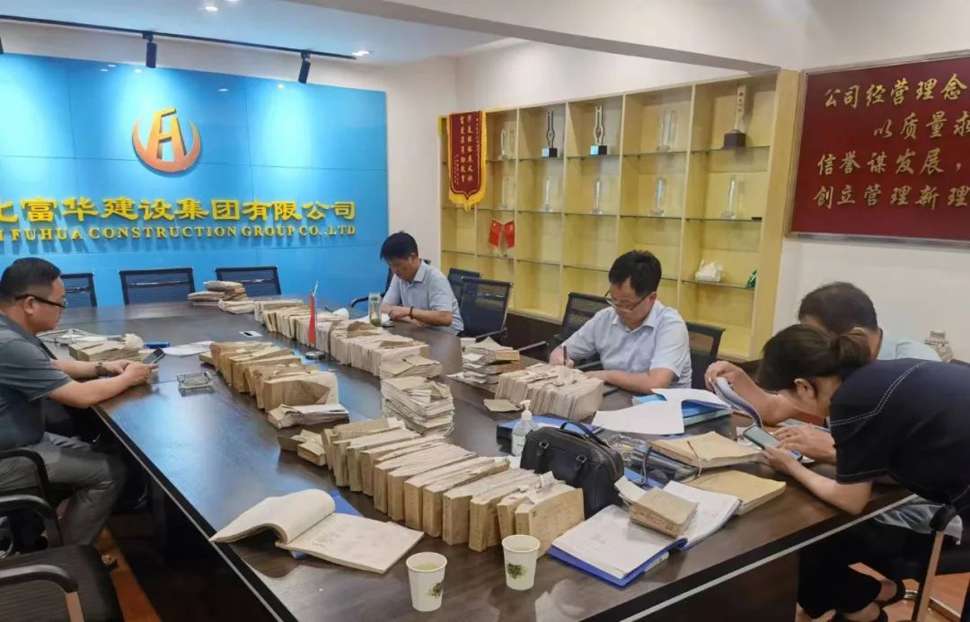 03.为全面了解拆迁户相关信息,加快推进房屋征收工作进度,8月8日晚,董事长杨天平、总工程师张博及总会计师夏丹丹到富华公司查阅集团包保拆迁户原始住房资料。
