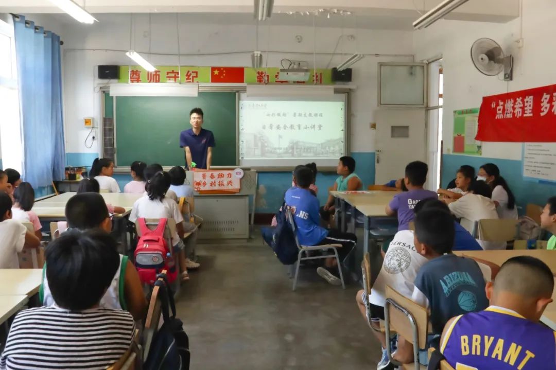 支教第四天,“点燃希望 多彩‘E’夏”暑期乡村支教志愿服务实践团组织了“安全守护你我同行”“家乡旅游文化畅谈”“数学趣味探索与基础辅导”课程。
