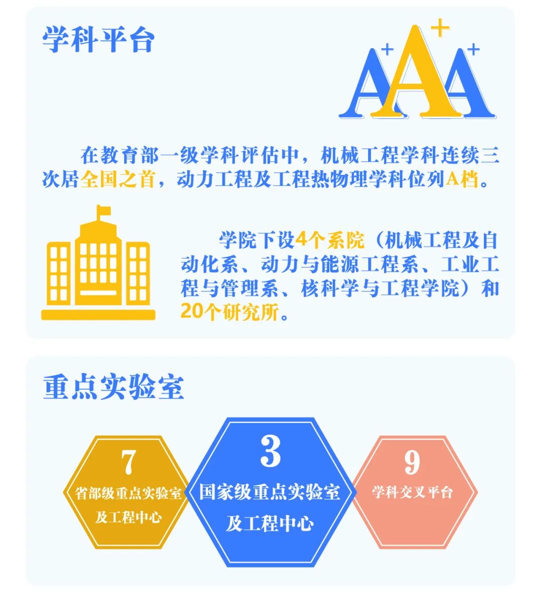 机械与动力工程学院历经百年风雨洗礼,培养了以著名科学家钱学森为代表的众多优秀人才,取得了一大批高水平成果,为我国的工业化、现代化做出了重要贡献。学院坚持以一流为目标,坚持以学科为基础,坚持以育人为根本,坚持以改革为动力,形成了科学尚实,创新卓越,和谐奋进的学院文化,成为上海交通大学乃至全国高校中最具实力、最富代表性、最有影响力的学院之一。