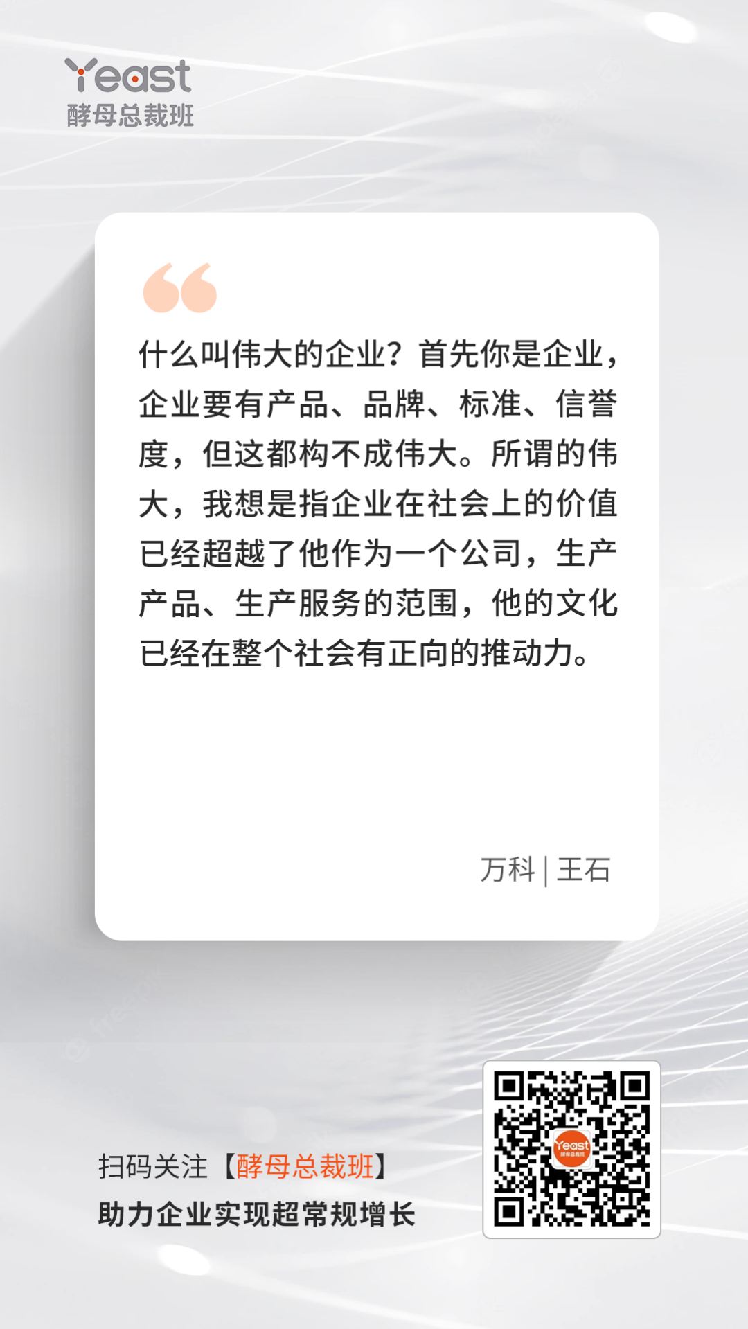王石:所谓伟大企业,是它的文化在整个社会有正向的推动力