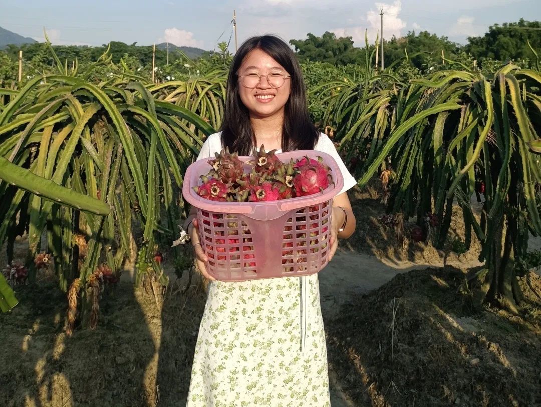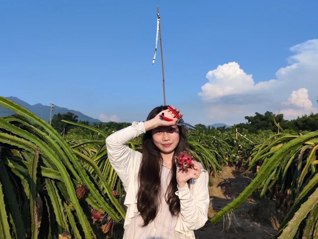 在访谈之余,调研组也先后到果园地与农户一起采摘火龙果,到农场帮农户收稻谷。绿皮火龙果让队员们大开眼界,酸酸甜甜的新品种更是让人喜不自胜。一筐筐红心火龙果,承载的不仅是农户的心血,更是丰收的喜悦。