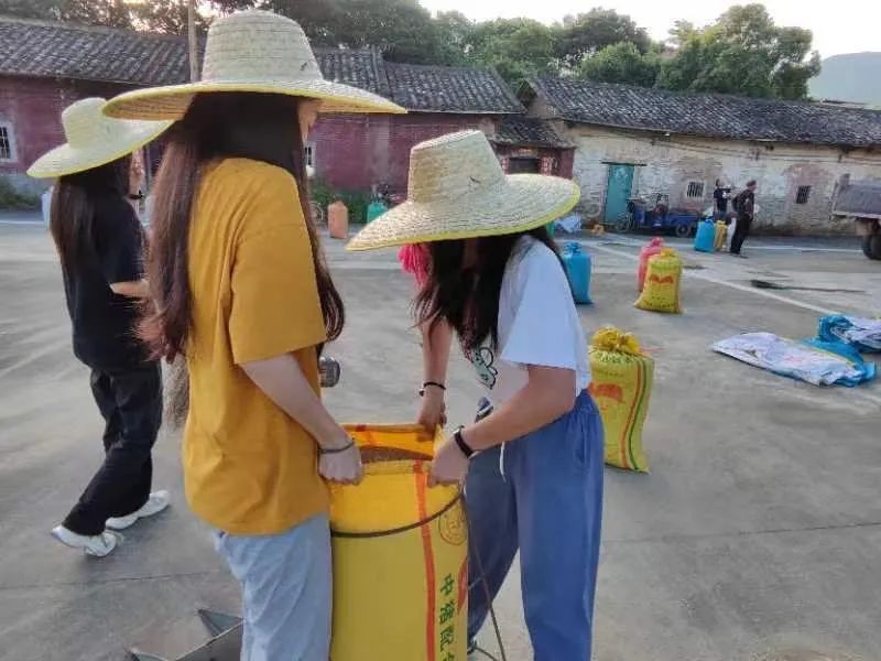 农场里映入眼帘的是烈日下铺满地的金色稻谷和农户们晶莹的汗水。队员们戴起草帽,拾起工具,一同加入到收稻谷的大队中!从下午五点至晚上七点半,终于收完了所有稻谷。虽不易,但十分充实快乐!